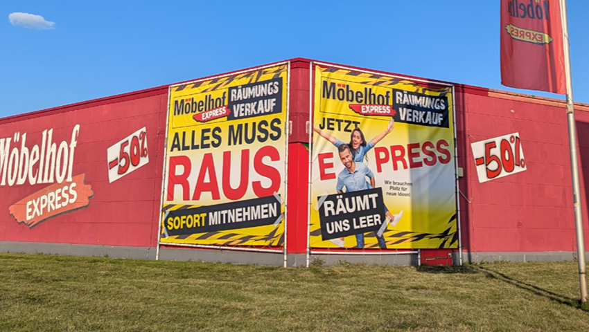 Der trendige Möbel Discounter EXPRESS macht Platz für neue Ideen und Angebote am Standort Hüttenblick 4. Die Planungen für die zukünftige Nutzung stehen bereits fest, es fehlt nur noch die offizielle Genehmigung, bevor weitere Informationen bekannt gegeben werden können. Die gesamte Verkaufsfläche und das Lager von EXPRESS müssen vollständig geräumt und besenrein übergeben werden. Daher gibt es das komplette EXPRESS Sortiment ohne Ausnahme jetzt zum halben Preis. Alle Artikel sind sofort verfügbar, solange der Vorrat reicht. Die Geschäftsleitung des Möbelhauses Adersheim bedankt sich bei allen Kunden, die mit ihrem Einkauf dabei helfen, den Möbelhof Adersheim fit für die Zukunft zu machen.